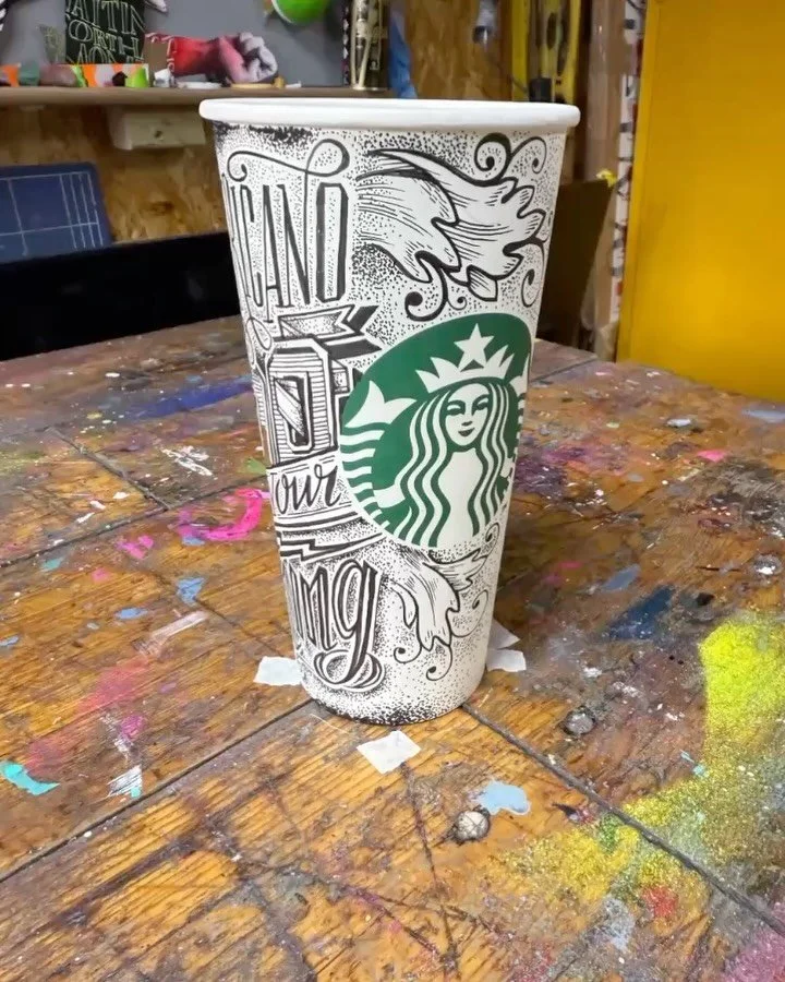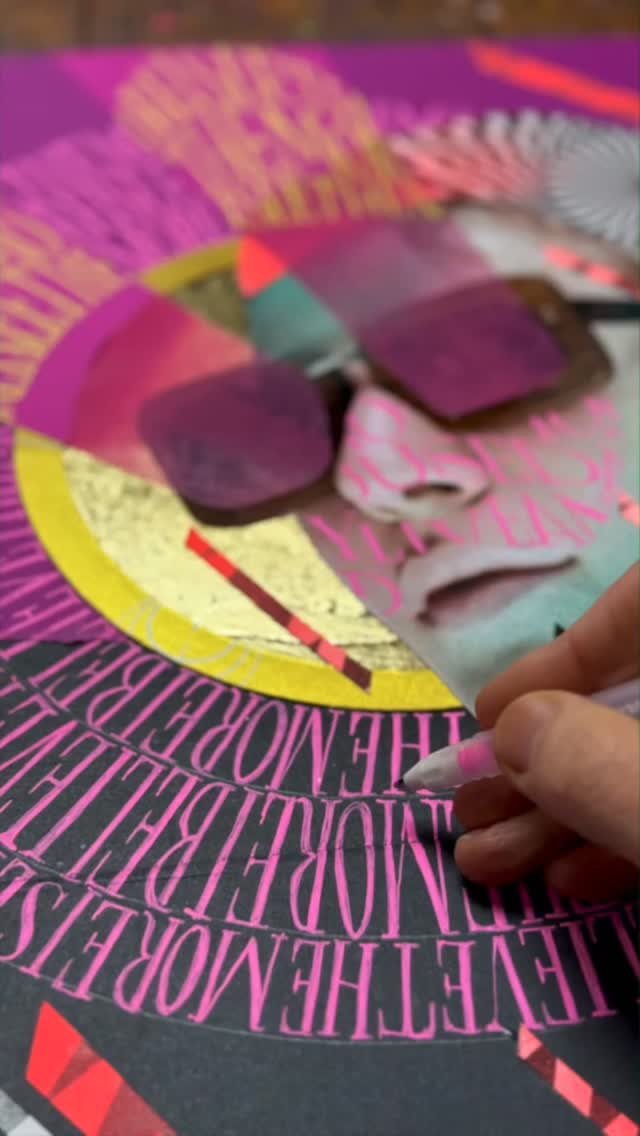 “I am an artist and designer specialising in hand lettering, collage and illustration for both personal and commercial projects. My work explores storytelling, craftsmanship and visual impact, often using unconventional mediums to transform everyday objects into art. Embracing imperfection and spontaneity, I create pieces that are expressive, personal and engaging.”