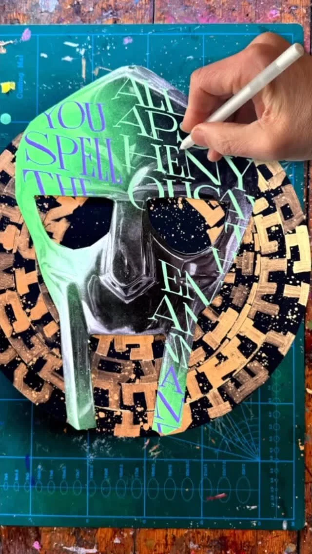 “I am an artist and designer specialising in hand lettering, collage and illustration for both personal and commercial projects. My work explores storytelling, craftsmanship and visual impact, often using unconventional mediums to transform everyday objects into art. Embracing imperfection and spontaneity, I create pieces that are expressive, personal and engaging.”